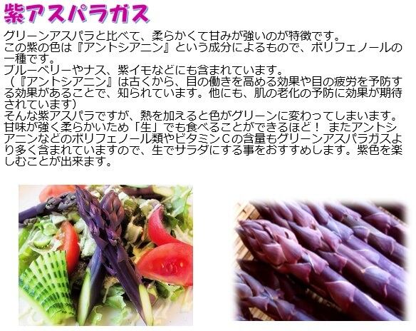 サイズ グリーンアスパラ+紫アスパラ:2L L 混み